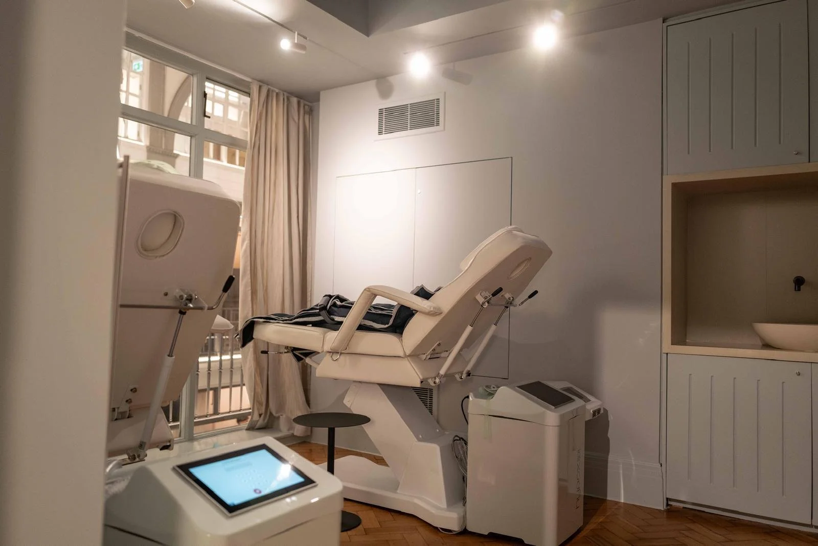 Downstairs is the UK’s first Longevity Lab, a treatment and assessment space for modern regeneration. Guests can try red light therapy, lymphatic drainage, pelvic floor activation and the REGEVITY MASTER, available exclusively here and the first of its kind in the UK.