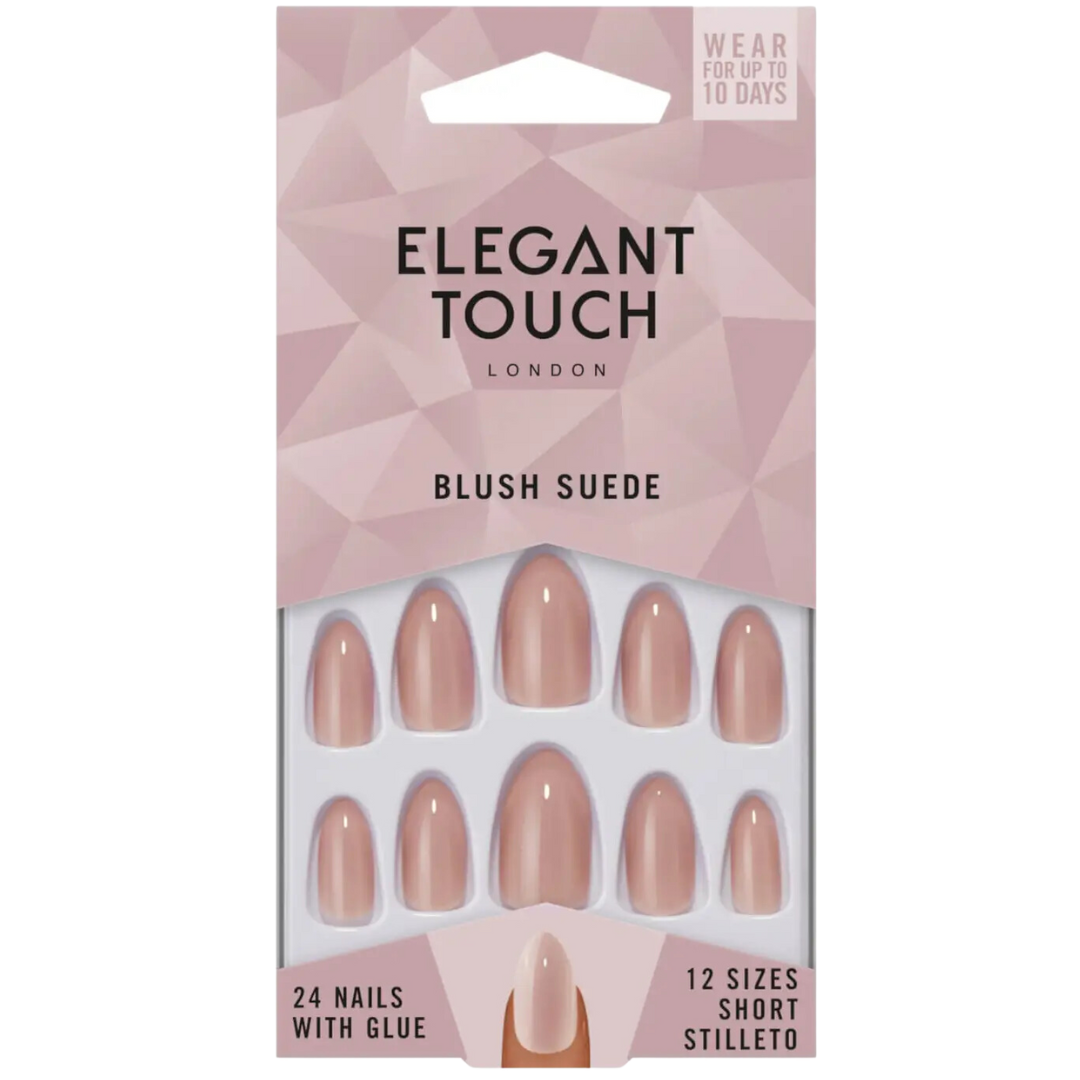 These Elegant Touch press-ons in the colour "Blush Suede" are great for anyone looking for a bit of length without compromising a natural nail look. The nails come in the on-trend short stiletto shape with a glossy finish. They’re incredibly simple to use, and guarantee durable and professional-looking manicure in only a few seconds.