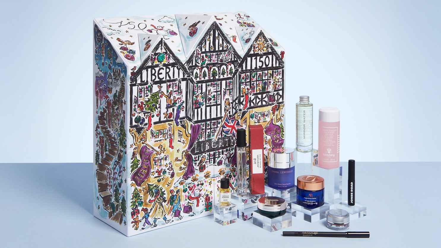 Liberty’s calendar is the connoisseur’s pick, pairing the store’s design heritage with a high calibre beauty edit. Inside are 30 products with an unusually strong ratio of full sizes, and a line-up that moves from La Mer and Augustinus Bader to Trinny London, Jones Road and niche fragrance names. The value lands around £1,245 against a £275 price, which is compelling without leaning on filler. It is presented in a fully recyclable box illustrated by Clym Evernden, and this year includes a Liberty Ianthe print drawstring bag that turns the unboxing into a keepsake moment. If you want a single purchase that feels like a tour of a world-class beauty hall, this is the one to secure.